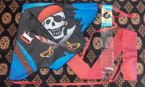 HQ Medium Pirate Delta. 115 cm wide and 72 cm high. - wind range is 5 to 20 knots. Nylon sail on a fiberglass frame ,twisted nylon flying line included (17kg x 25m)