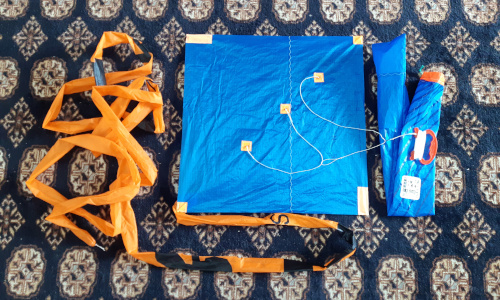 Diamond kite, Blue with 4m Orange tail.
