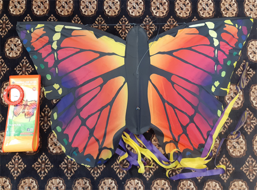 Nylon sail on a fiberglass frame ,twisted polyester flying line included (17kg x 40m).1.3m wide ,80cm high - wind range is 5 to 15 knots.