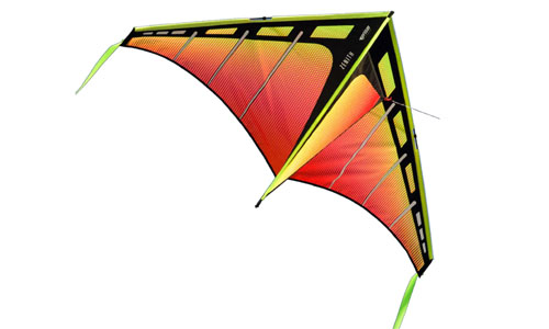 Infrared delta kite has a ripstop nylon sail on a fibreglass frame. Dacron flying
